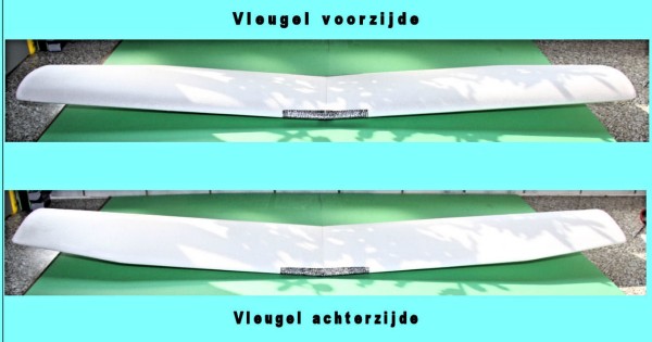 Spanwijdte 108 mm Romplengte 80 mm Vleugeloppervlakte 16,20 dm Vlieggewicht 300 gram Vleugelbelasting 18.5 gr |