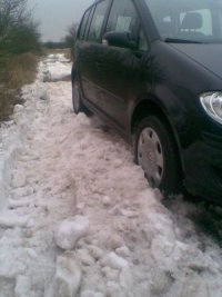 Havikkerwaard. Prima weer om brevet te vliegen ....... vond ik. Helaas heb ik het veld niet bereikt. Er lag nog wat resten van sneeuwduinen waarvan ik dacht er met zomerbandjes wel overheen te kunnen rijden. Halverwege bleek het geen sneeuw maar kompleet ijs te zijn - de auto schoof wat weg - door de warmte van de motor zakte hij in het ijs. Er was geen beweging meer in te krijgen - niet vooruit - niet achteruit. Er zat niets anders op dan de auto uit (het ijs) te graven. Omdat het niet zo druk was moest ik mijzelf redden. Gelukkig had ik de heldere geest om de schop van het vliegveld te halen. Hiermede heb ik zo goed mogelijk alle ijs weggehakt / weggehaald. Nog nooit ben ik zo blij geweest met molshopen ! Die leverden het zand om onder / achter de voorwielen te strooien. Na ca 1 uur kon ik achteruit weg. Overigens ben ik op de terugweg toch nog even gaan vliegen (ik zal het toch een keer moeten leren) op mij prive-wei in Leuvenheim. Na twee sessie van 6 min was ik (en de pipercub ook) versteend. PS. Ik heb de schop achter de boomstronk gezet en zal hem vlg zaterdag weer terugleggen op het veld. |