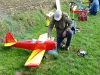 VMCR, Zoals afgesproken tijdens de laatste jaarvergadering ging ik er vanuit dat ik op paaszaterdag 22 mrt 2008 kon afvliegen voor het brevet. Ik was op alles voorbereid, had al nachten slecht geslapen, maar was stipt op tijd op het veld in de Havikerwaard aanwezig. Omdat het weer niet erg meewerkte (+2 grd (erg koud), wind NW 4-5 ( hard en dwars op de baan en regen) had ik andere maatregelen (mee)genomen om toch te kunnen afvliegen. Zie bijgevoegde foto. Helaas bleek dat, na zelfs nog een 1/2 uur gewacht te hebben, er niemand van de brevetvlieg-jury kwam opdagen. Omdat het ook bleef regenen heb ik de spullen en alle flessen wijn (ter omkoping van de jury) maar weer ingepakt en ben ik maar weer huiswaarts gekeerd. Op het moment dat ik dit bericht schrijf sneeuwt het volop buiten, kan ik dus weer niet oefenen voor het behalen van het vliegbrevet ! Met vriendelijke groet, Koos van Raaij |