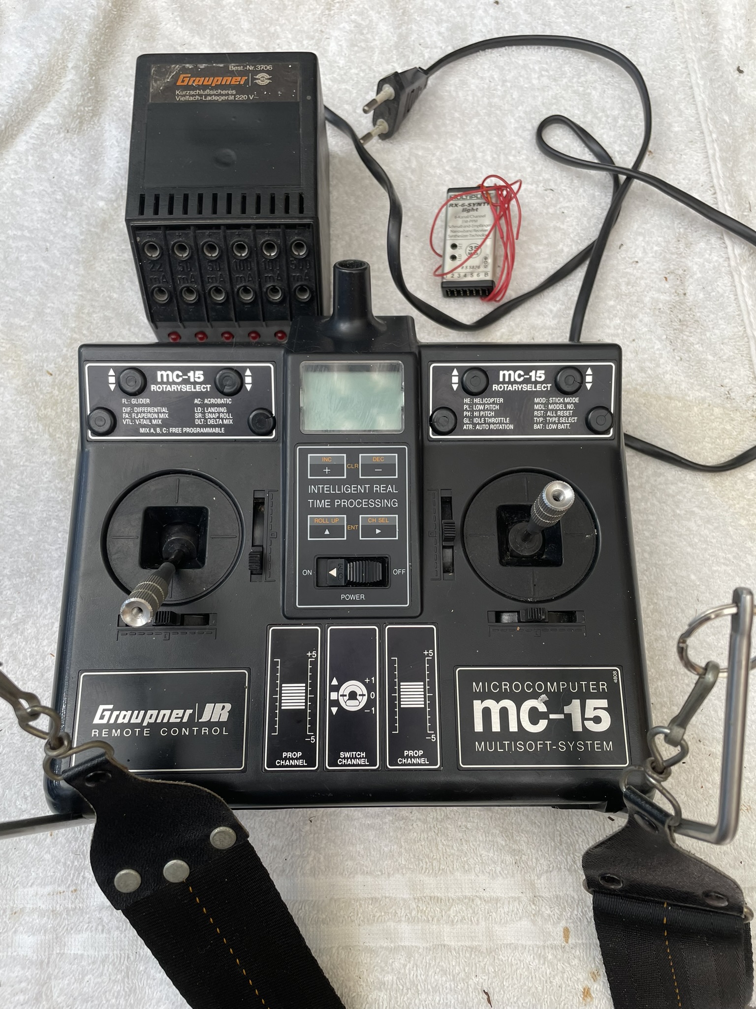 Electrozwever (Compleet) "ELECTRA". Uitstekende zweefeigenschappen tot en met windkracht 2.Spanwijdte 2000mm romplengte 1050mm.NB: Vleugel is aan een stuk. Inclusief : Borstelloze motor, regelaar , en 2 servo's.Graupner MC-15 radiobesturing 35 Mhz. kanaal 79. Handleiding zender digitaal beschikbaar.Graupner lader voor zender. met Multiplex 6 kanaals synthesizer ontvanger .2 x Kingmax 3s 3000Mah lipo. met B3 PRO Lipo lader.Vliegklaar en kan bij goed weer voorgevlogen worden. Helemaal compleet je hebt verder niets nodig. Klik op de afbeelding voor een grotere foto !! |