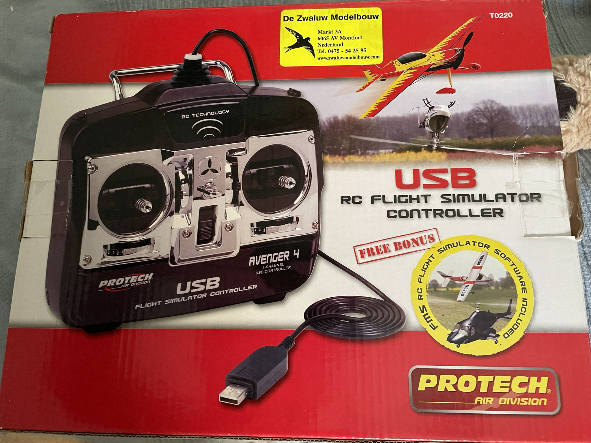 Zender + Dongel + Flightsimulator: Robbe Futaba FX18 ( alleen geschikt voor sim ) , Dongel met USB. Software : Aerofly Professional Deluxe. Klik op de afbeelding voor een grotere foto !! |